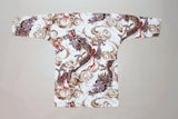 A large dragon shines on the white shirt, so it is a pattern that has a visual impact. Since it is a dragon which is a symbol of great power, your difficulty will surely be blown off!