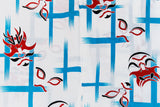 Yukata which embellished "Kumadori" which is a makeup method of Japanese traditional theater art called Kabuki. Among different colors, red Kumadori symbolizes the expression of "justice" and "courage" and it is said to have a motif which symbolizes "Zen."