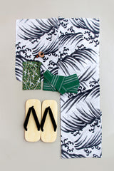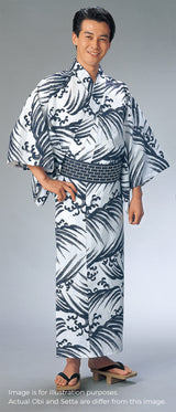 Yukata which embellished "wave" whose design is unique to Japan where is surrounded by the sea. It is also said that it has a motif which wishes that peace and happiness will continue constantly like the wave that repeatedly comes to the shore.