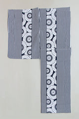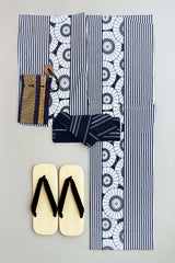 Yukata which embellished "wagasa," Japanese umbrella, made of Japanese paper and bamboo. It is said that noble lady used to use a Japanese umbrella as an amulet in the past (during the Heian period). It is a cute pattern, but also it has a motif to keep bad things away.