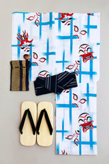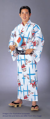 Yukata which embellished "Kumadori" which is a makeup method of Japanese traditional theater art called Kabuki. Among different colors, red Kumadori symbolizes the expression of "justice" and "courage" and it is said to have a motif which symbolizes "Zen."